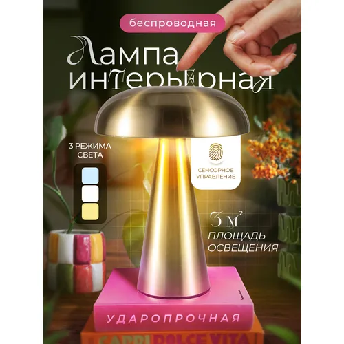 Лампа настольная беспроводная, металлическая, светильник настольный сенсорный , ночник в спальню, лампа светодиодная