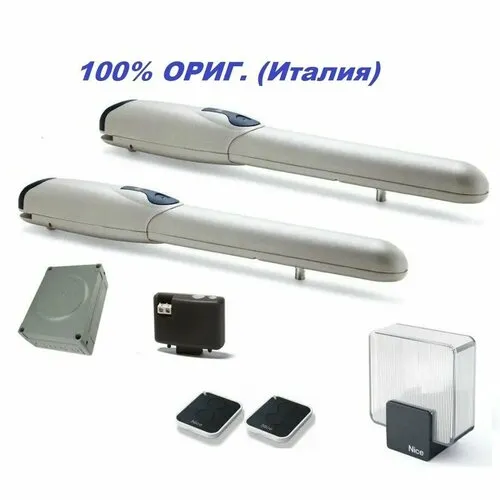 NICE WINGO5klt+lamp Комплект автоматики для распашных ворот со створками шириной до 3,5 метров и массой до 500 кг. (два привода, блок управления, радиоблок, два пульта, лампа Nice)