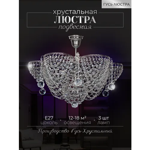 "Подвесная люстра хрустальная "Алёнка II"диаметр 45 см, 3 лампы, Е27, 60 Вт, люстра Гусь Хрустальный" относится к дешёвому сегменту . Цена, предложенная магазином Яндекс.Маркет , на 0% отличается от популярной цены (19230 руб.).