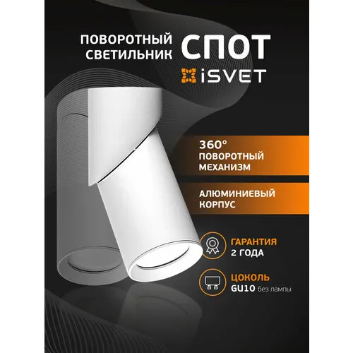 Поворотный спот светильник iSvet, для лампы GU10 MR16, потолочный, настенный бра MRL-102 белый