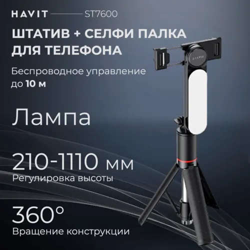 "Штатив для телефона Havit ST7600, селфи палка с лампой и пультом управления" относится к дешёвому сегменту . Цена, предложенная магазином Яндекс.Маркет , на 0% отличается от популярной цены (2400 руб.).
