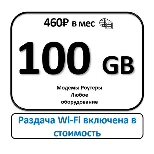 Сим карта 100 ГБ и безлимитный интернет с бесплатной раздачей Wi Fi для модемов и роутеров