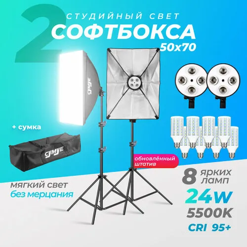 "Софтбокс комплект из 2 штук 8 ламп 24W 5500-6000K CRI 95+ сумка топовый штатив" относится к дешёвому сегменту . Цена, предложенная магазином Яндекс.Маркет , на 0% отличается от популярной цены (11000 руб.).