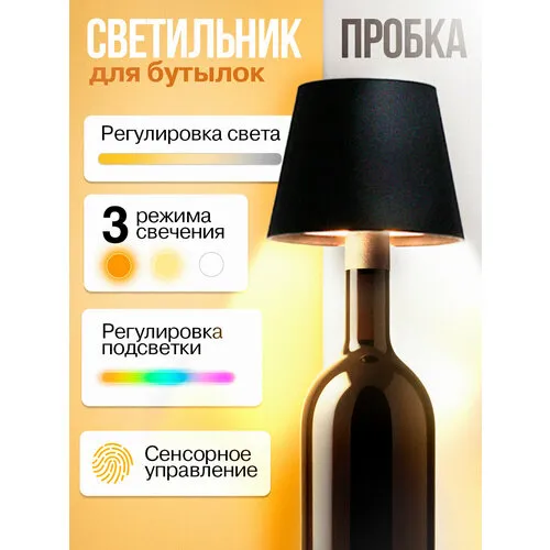 Светильник лампа для бутылки с подсветкой RGB в подарок универсальная VOA, настольная