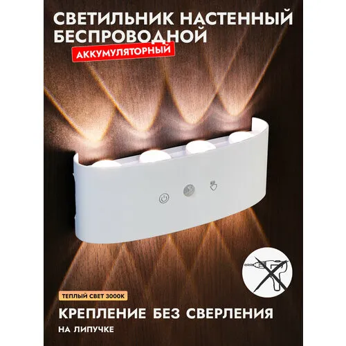 Светильник настенный беспроводной аккумуляторный белый с датчиком движения 8 ватт ламп теплый свет 3000К