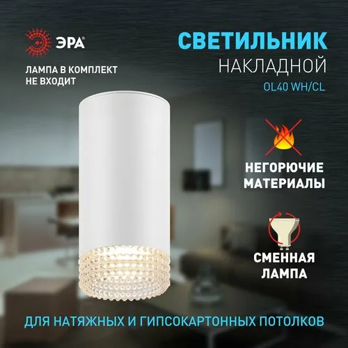Светильник настенно-потолочный ЭРА OL40 WH/CL под лампу GU10 12Вт белый, прозрачный спот