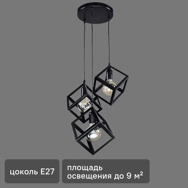 Светильник подвесной КС30103/3P, под 3 лампы, 9 м², цвет чёрный