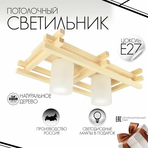 Светильник потолочный деревянный Натуральное дерево 2 лампы