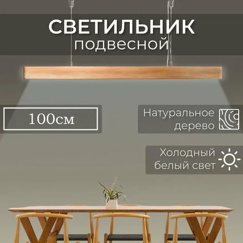 Светильник потолочный подвесной деревянный линейный светодиодный led лед из дерева/люстра/лампа/подсветка/свет 100 см