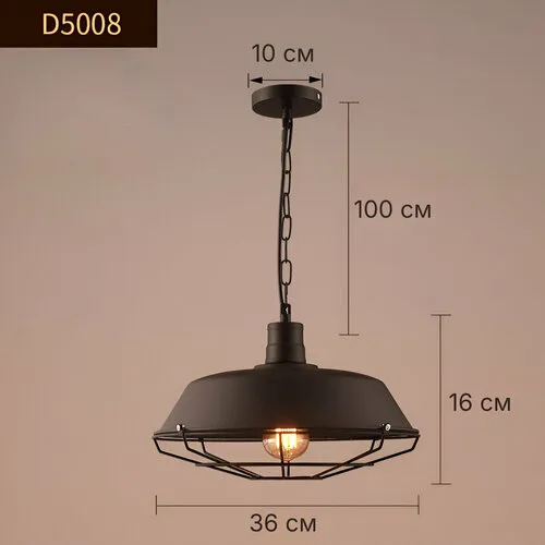 Светильник потолочный подвесной Лофт люстра без лампы, Е27, [D5008 -36см] Черный снаружи и черный внутри