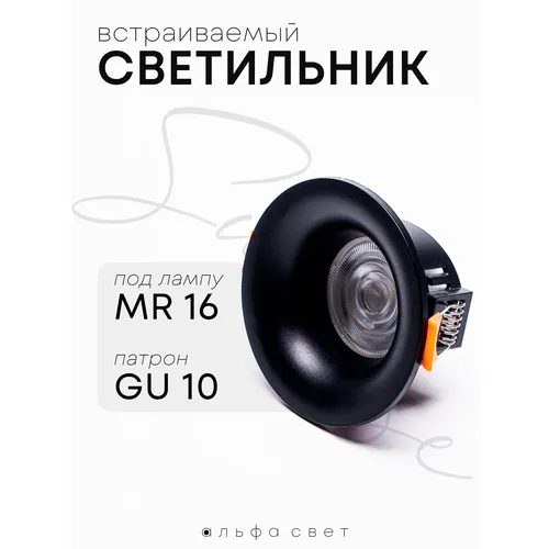 Светильник встраиваемый под лампу MR16, цоколь GU10, 90(65)мм, IP20, круг, черный, Альфа Свет
