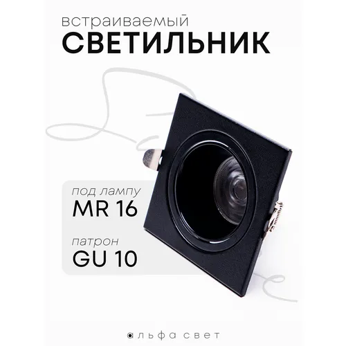 Светильник встраиваемый под лампу MR16, цоколь GU10, 88(70)мм, IP20, квадрат, черный, Альфа Свет