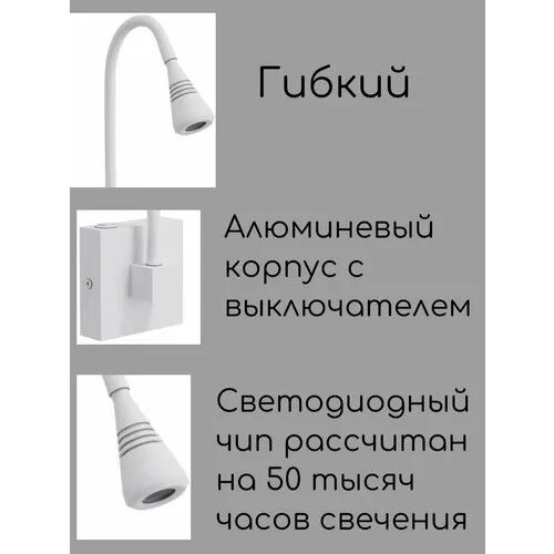 57Светодиодная гибкая настенная лампа на плоском основании с выключателем, Бра для спальни, гостиной, кухни Wogow Белый
