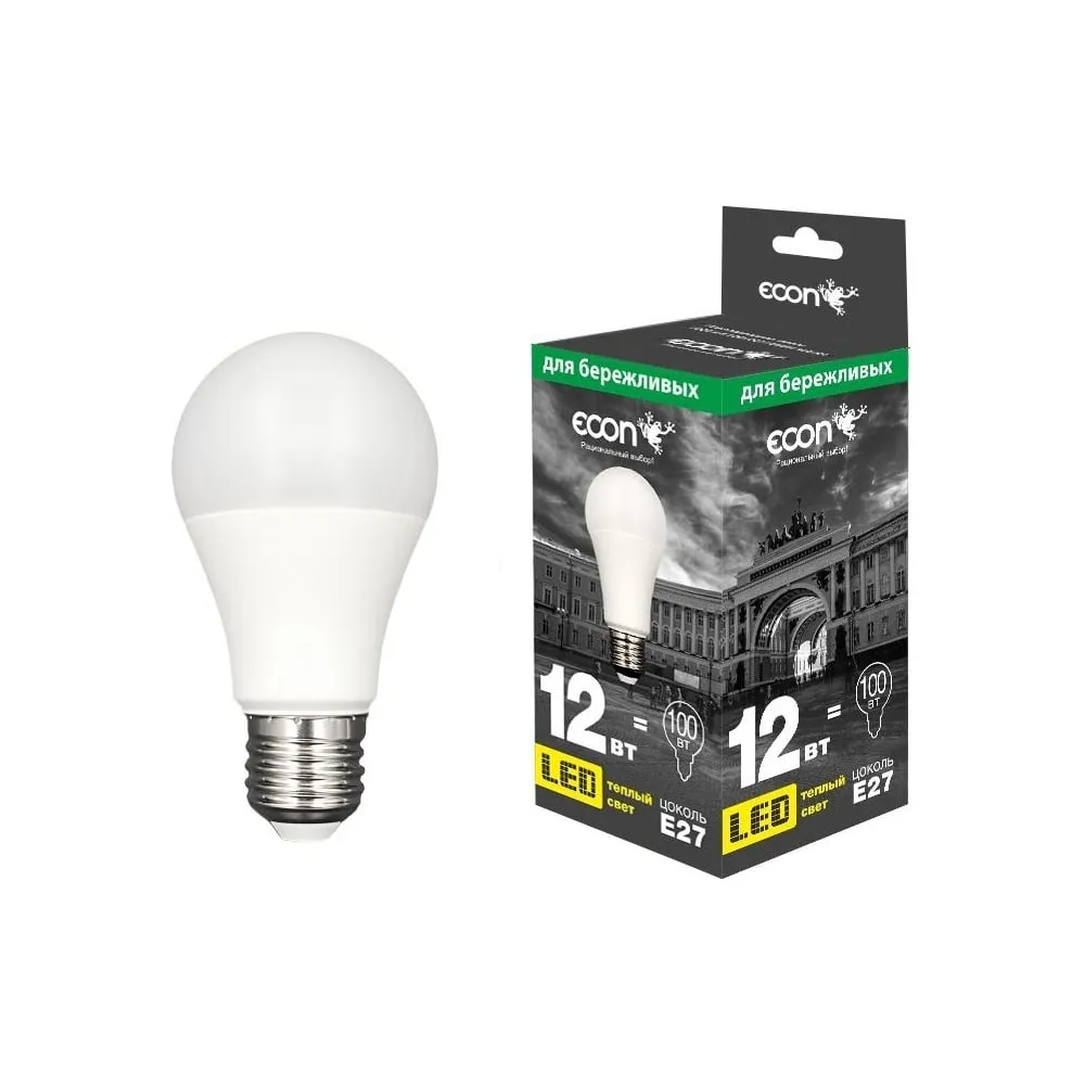 Цены на похожие товары Econ, 3000 K, 1140 Лм, 80 Ra, 12 Вт, 220 В, груша, A, e27