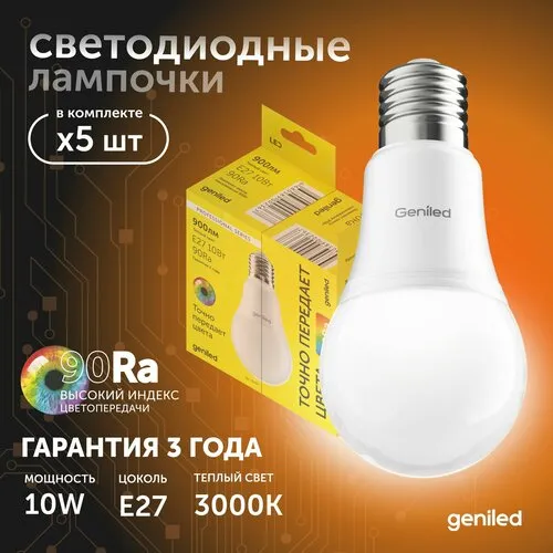 Светодиодная лампа Энергосберегающая Geniled E27 A60 10Вт 3000K 90Ra Груша 10 шт