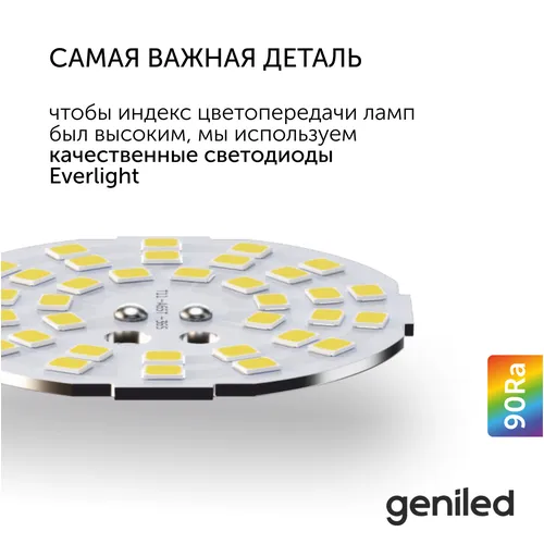 3Светодиодная лампа Энергосберегающая Geniled E14 G45 9Вт 3000K 90Ra Шар 10 шт