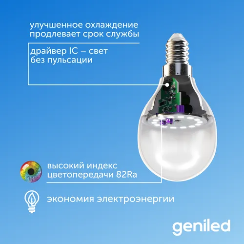 "Светодиодная лампа Энергосберегающая Geniled E14 G45 9Вт 4200К матовая Шар 10 шт" относится к дешёвому сегменту . Цена, предложенная магазином Яндекс.Маркет , на 0% отличается от популярной цены (3290 руб.).