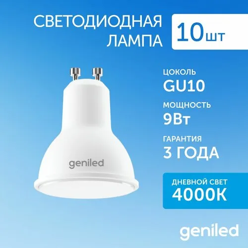 Светодиодная лампа Энергосберегающая Geniled GU10 MR16 9Вт 4000K 90Ra линза Софит 10 шт