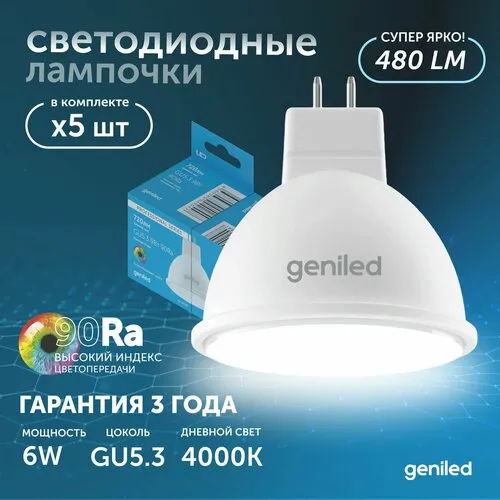 Светодиодная лампа Энергосберегающая Geniled GU5.3 MR16 6Вт 4000K 90Ra Софит 10 шт