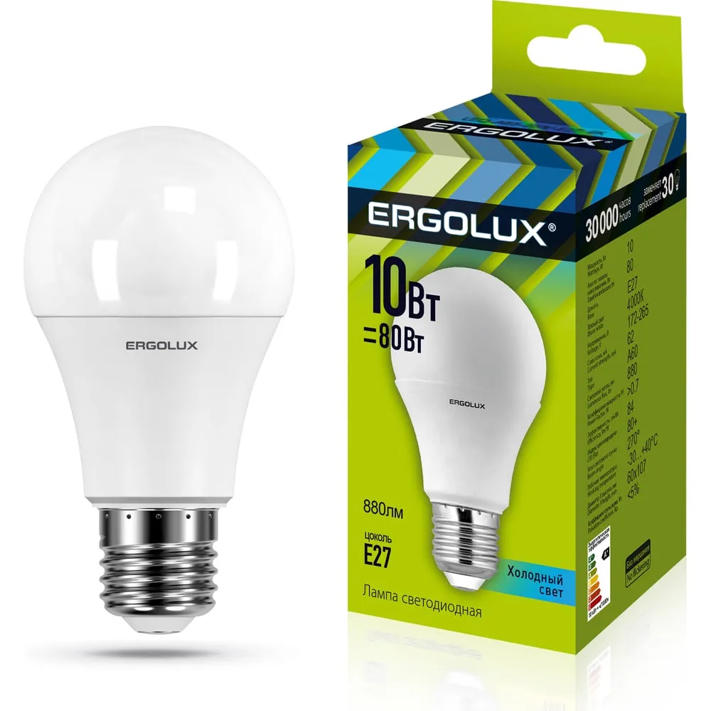 Цены на похожие товары Ergolux, 4500 K, 880 Лм, 77 Ra, 10 Вт, e27, груша, A, 220 В