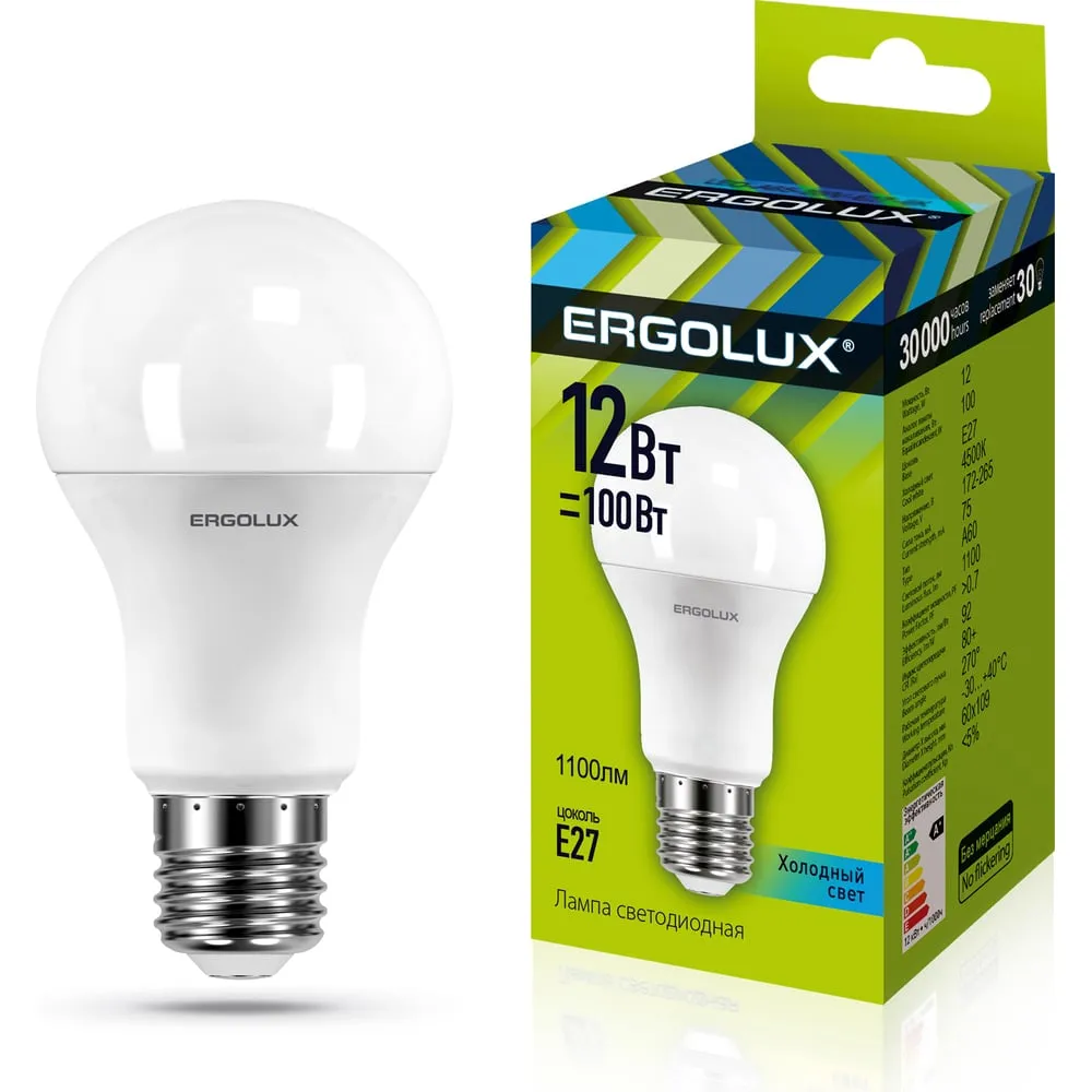 Цены на похожие товары Ergolux, 4500 K, 1155 Лм, 77 Ra, 12 Вт, груша, e27, A, 220 В