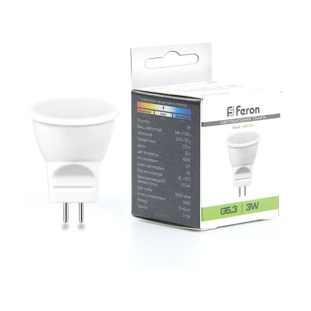 Цены на похожие товары Feron, mr11, рефлектор, 3 Вт, 4000 K, 270 Лм, 80 Ra, G5.3, 220 В