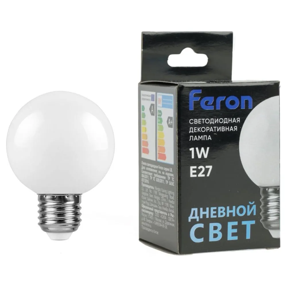 Цены на похожие товары Feron, 1 Вт, 230 В, e27, 7000 K, 80 Лм, 80 Ra, g45, шар