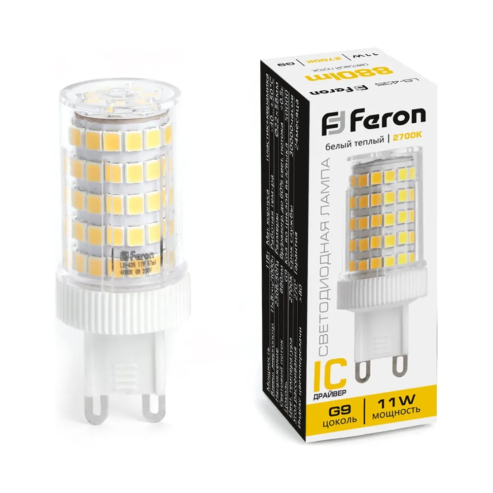 Цены на похожие товары Feron, 2700 K, 880 Лм, 80 Ra, 11 Вт, кукуруза, 220 В, g9, JCD9