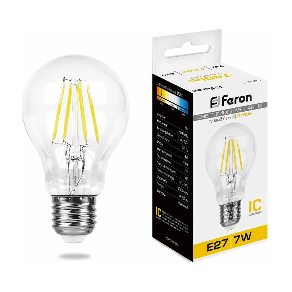 Цены на похожие товары Feron, 7 Вт, 230 В, e27, 2700 K, 740 Лм, 80 Ra, груша, a60