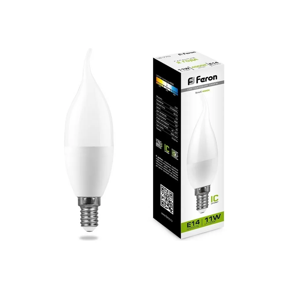 Цены на похожие товары Feron, 4000 K, 935 Лм, 80 Ra, 11 Вт, C37T, e14, 220 В, свеча на ветру