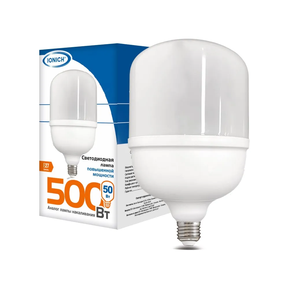 Цены на похожие товары Ionich, 4000 K, 4500 Лм, 80 Ra, 50 Вт, t125, трубка, e27, 220 В
