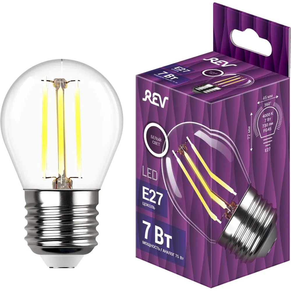 Светодиодная лампа REV LED G45 Е14 7Вт, 560Лм, 4000K 32341 9