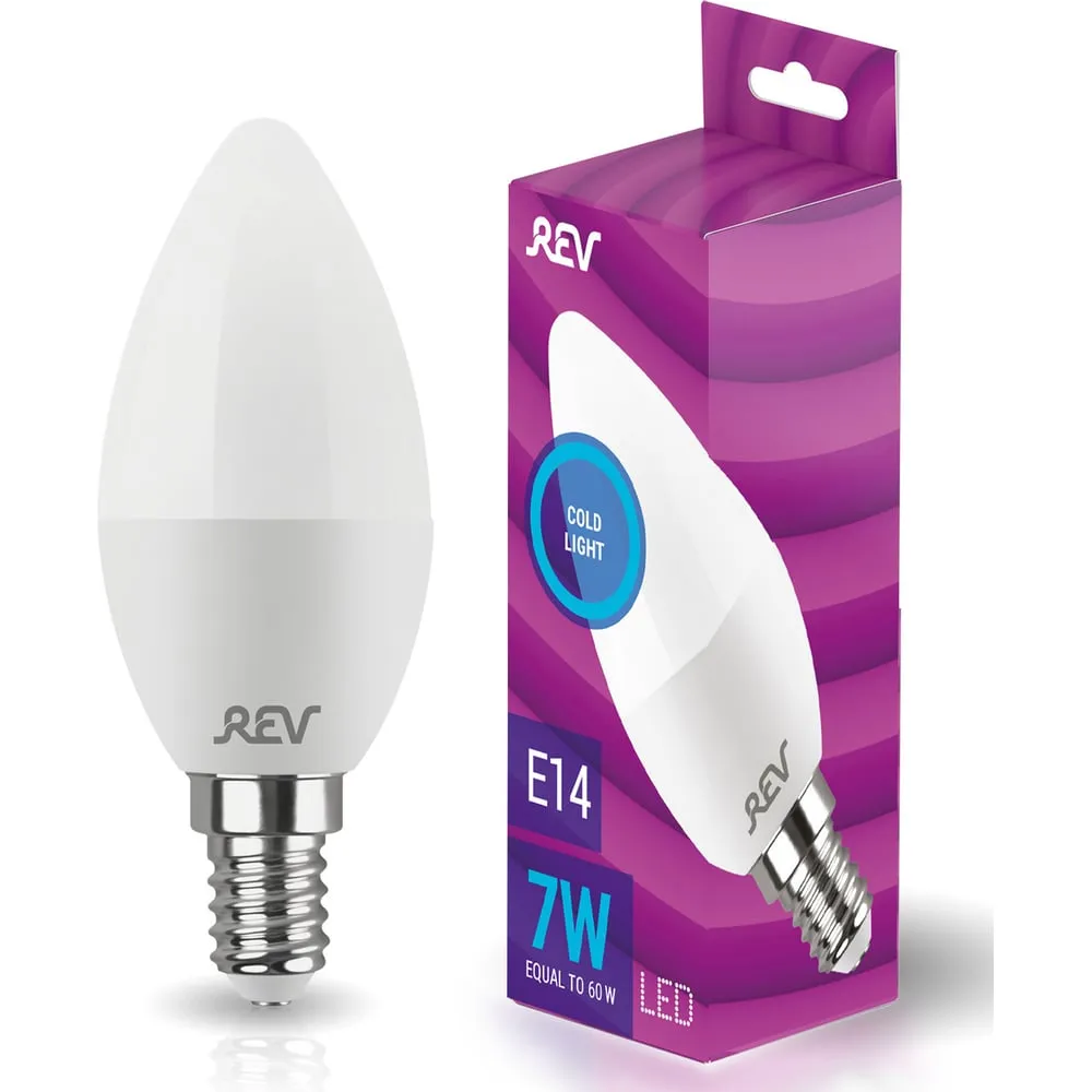 Цены на похожие товары Rev, 6500 K, 560 Лм, 80 Ra, 7 Вт, e14, свеча, C, 220 В
