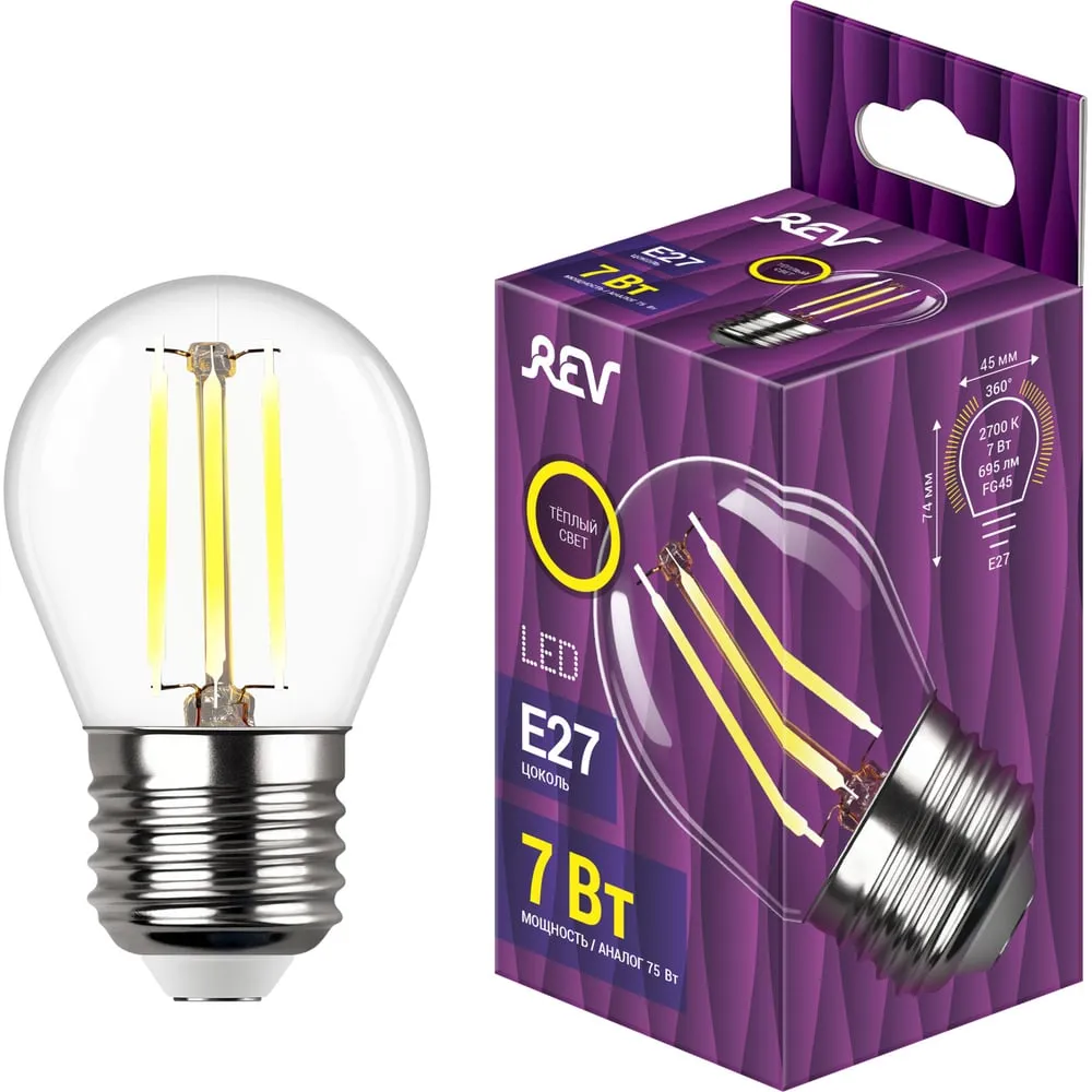 Светодиодная лампа REV LED G45 Е27 7Вт, 600Лм, 2700K 32342 6