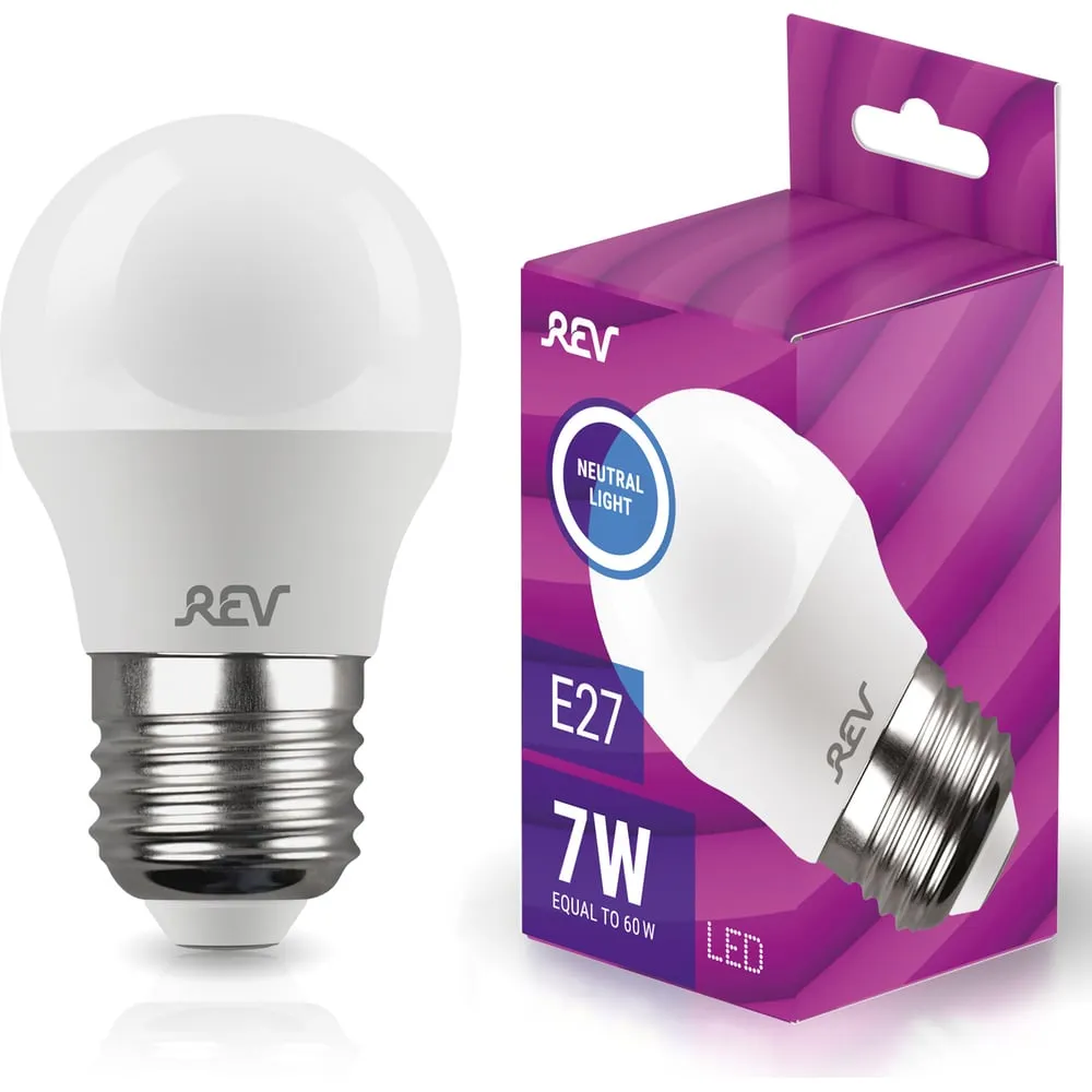 Цены на похожие товары Rev, g45, шар, e27, 7 Вт, 4000 K, 560 Лм, 80 Ra, 220 В