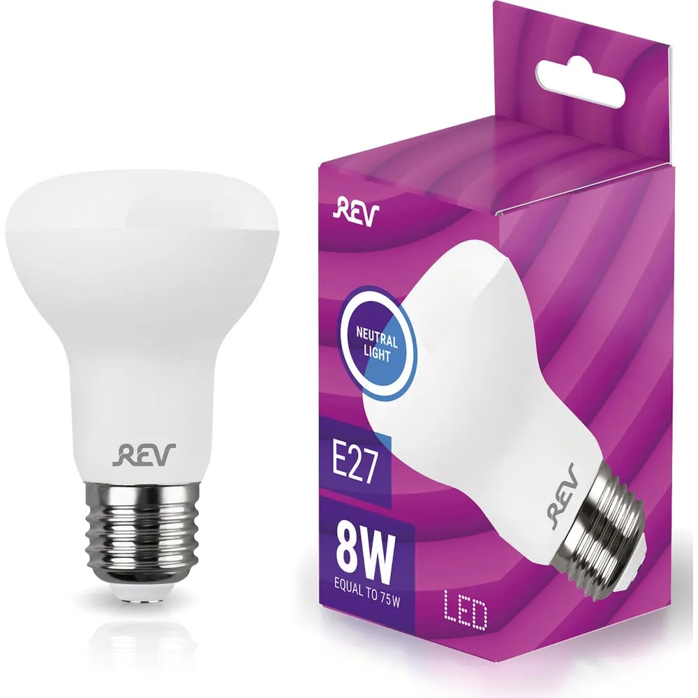 Цены на похожие товары Rev, r63, рефлектор, e27, 8 Вт, 4000 K, 640 Лм, 80 Ra, 220 В