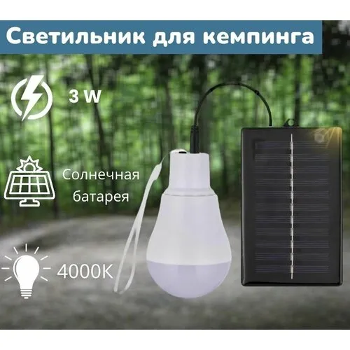 Светодиодная лампа с солнечной панелью. Освещение для палатки. Портативный фонарь