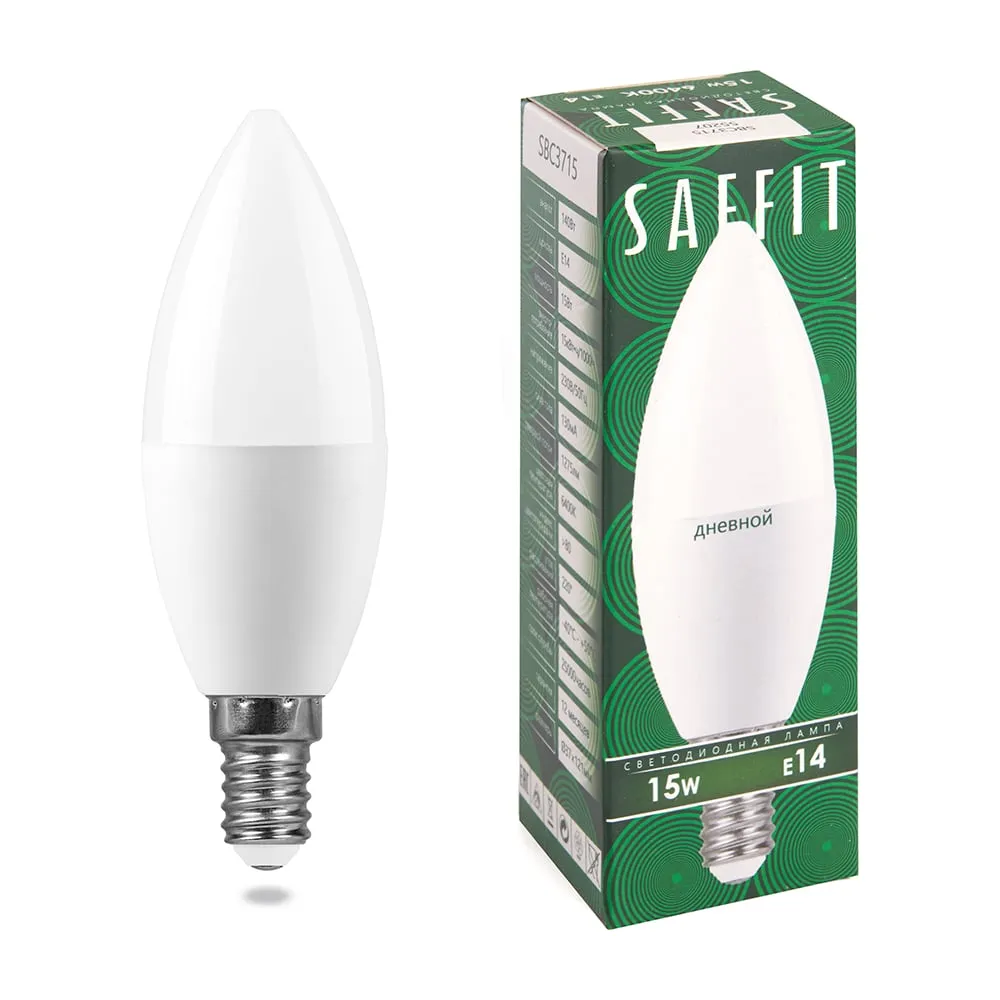 Цены на похожие товары Saffit, 6400 K, 1275 Лм, 80 Ra, 15 Вт, e14, 220 В, свеча, c37