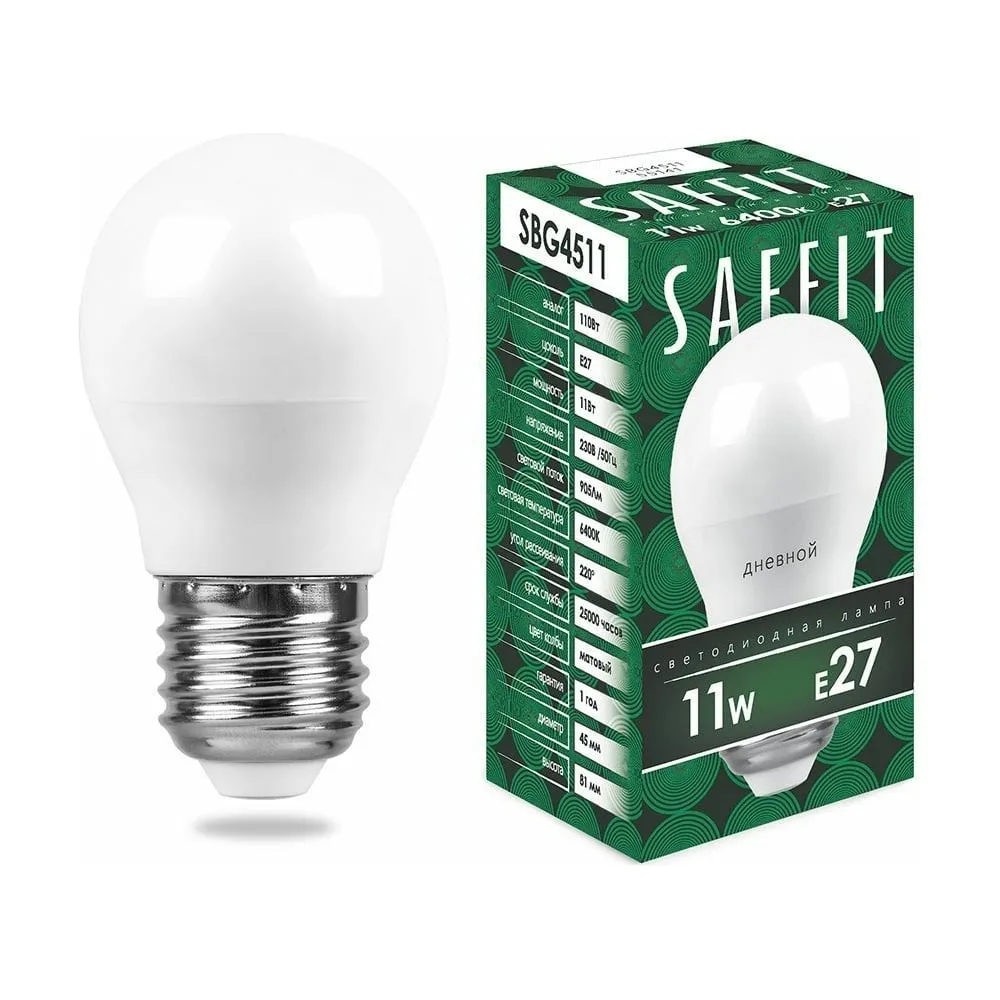 Цены на похожие товары Saffit, 6400 K, 905 Лм, 80 Ra, 11 Вт, шар, e27, 220 В, g45