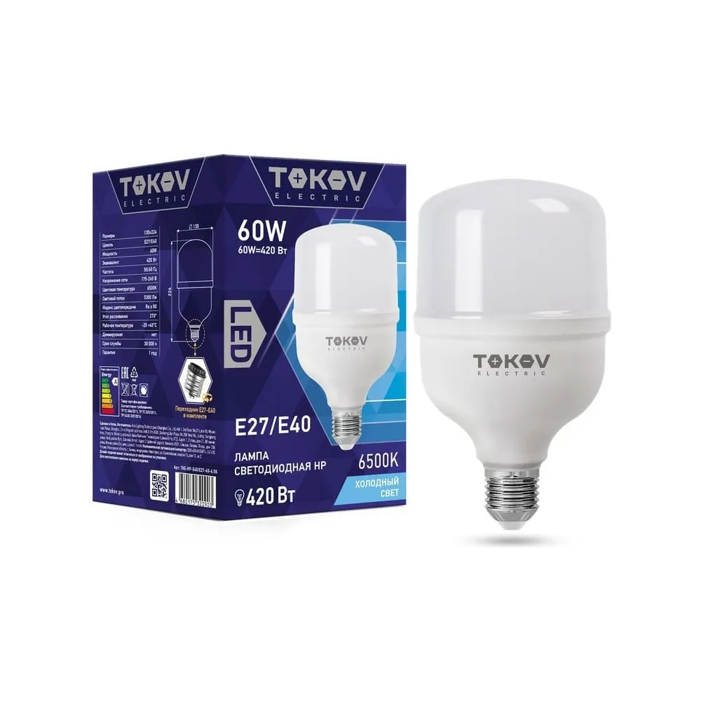 Светодиодная лампа TOKOV ELECTRIC TKE-HP-E40/E27-60-6,5K