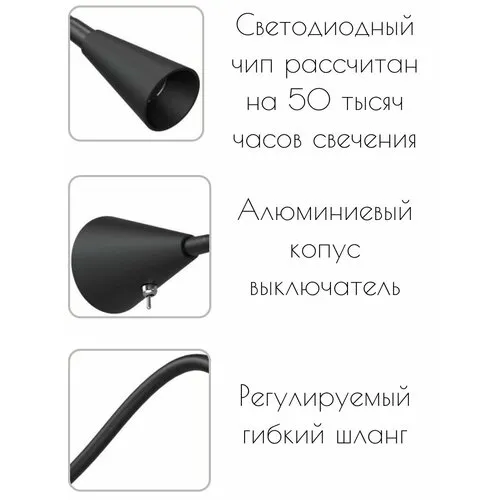 Светодиодная настенная лампа с выключателем, Бра гибкий для спальни, гостиной, кухни Wogow Черный