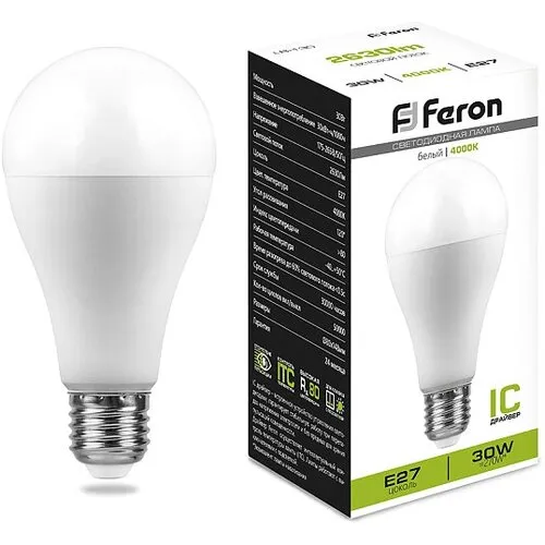 Цены на похожие товары Feron, груша, a80, 4000 K, e27, 230 В, 30 Вт