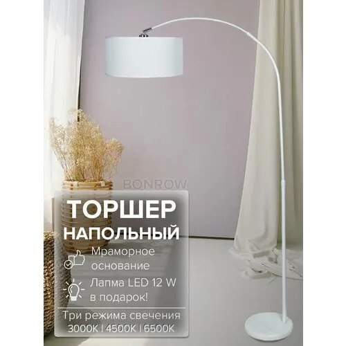 Торшер напольный BONROW на мраморном основании, Лампа для чтения, Светильник напольный с абажуром, цоколь E27