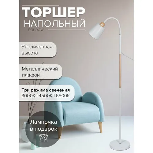 Торшер напольный BONROW на мраморном основании, Лампа для чтения, Светильник напольный с абажуром, цоколь E27