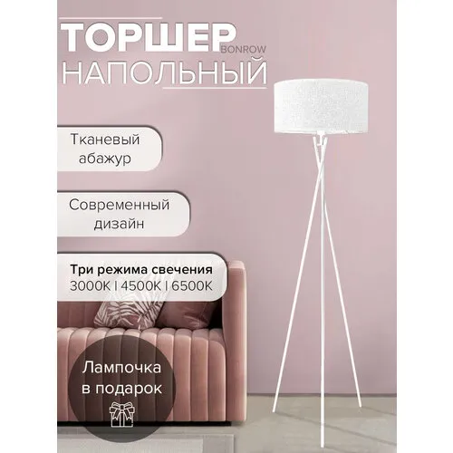 Торшер напольный BONROW с тканевым абажуром, Светильник на треноге, Напольная лампа для комнаты, цоколь E27