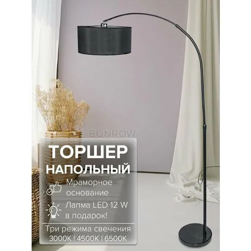 Торшер напольный BONROW на мраморном основании, Лампа для чтения, Светильник напольный с абажуром, цоколь E27