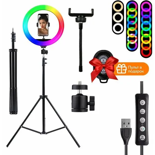 "Цветная кольцевая лампа LED RGB RD 30 см, со штативом, с держателем телефона, селфи пульт в подарок, Bluetooth пульт, селфи лампа ргб" относится к дешёвому сегменту . Цена, предложенная магазином Яндекс.Маркет , на 0% отличается от популярной цены (4500 руб.).