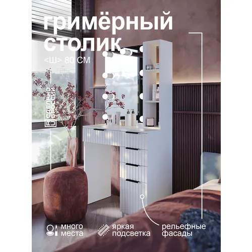 "Туалетный столик GRIMSTOL 2БЕ60-ВТ, гримёрное зеркало с лампочками, LED-подсветка для макияжа, для спальни, белый, Вельвет" относится к среднему сегменту . Цена, предложенная магазином Яндекс.Маркет , на 83% отличается от популярной цены (15860 руб.).