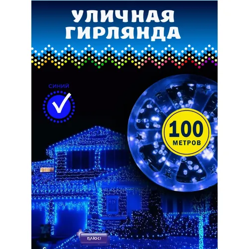 Уличная гирлянда на катушке 100 метров/Светодиодная гирлянда 500 ламп/Синий свет