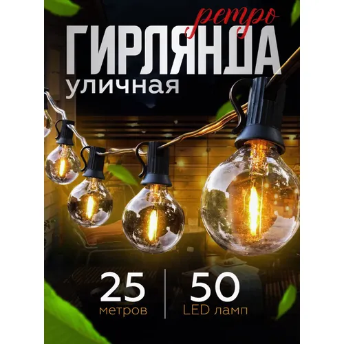 "Уличная ретро гирлянда 25 метров/ Электрическая гирлянда Ретро лампочки накаливания уличная садовая 25 метров 50 ламп" относится к дешёвому сегменту . Цена, предложенная магазином Яндекс.Маркет , на 0% отличается от популярной цены (4110 руб.).